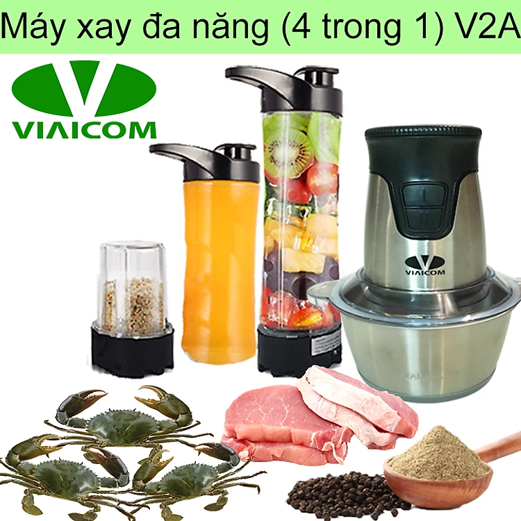 Máy xay đa năng gia đình 4 trong 1 VIAICOM V2A – Cối inox - Hàng chính hãng