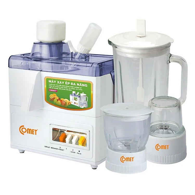 Thiết kế hiện đại, tiện dụng. Đầu ống ép có thiết kế cao, loại bỏ hoàn toàn khả năng chạm bám vào bề mặt lưỡi dao, tuyệt đối an toàn. Núm vặn thông minh hiển thị các tốc độ xay ép rõ ràng, phù hợp với mọi đối tượng sử dụng. Chân đế của máy ép được đệm miếng lót cao su giúp máy hoạt động êm ái, không bị trượt khi đang sử dụng.