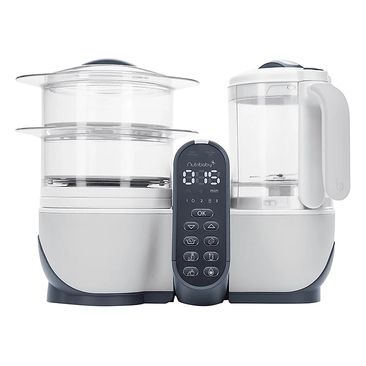 Máy Nutribaby gồm 2 khối máy: cối xay dùng để thực hiện chức năng xay, và cối hấp dùng để thực hiện chức năng hấp, hâm nóng, tiệt trùng, rã đông. Điểm khác biệt của Máy nutribaby 5 in 1 là sự liên kết kép với cơ chế hoạt động tự động hóa 100%, mẹ chỉ cần lựa chọn chức năng cần sử dụng, cài đặt chu trình và thời gian phù hợp rồi nhấn nút khởi động, máy sẽ tự vận hành từ A - Z.