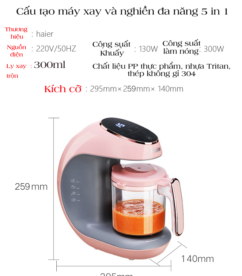 Các bữa ăn bổ dưỡng cho bé dễ dàng với Máy xay hấp nghiền thức ăn cho bé đa năng 5in1 (haierHBB-I0201 xanh)