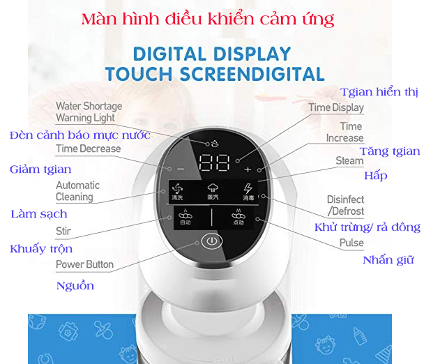Tự hào với thiết kế sáng tạo và bảng điều khiển cảm ứng hiển thị kỹ thuật số cho phép xử lý bạn làm việc chỉ bằng một tay. Dễ dàng giữ em bé của bạn trong khi chế biến thức ăn của mình.