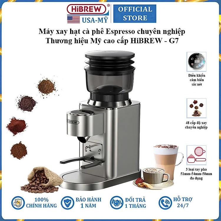 Máy xay hạt cà phê Espresso chuyên nghiệp thương hiệu HiBREW G7 tích hợp 48 chế độ xay - Hàng Chính Hãng
