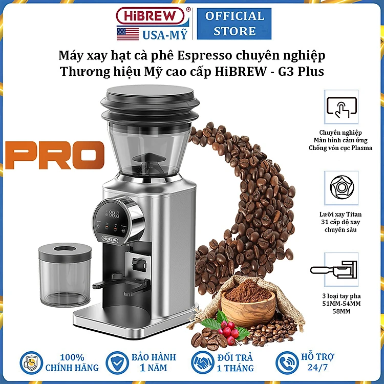 Máy xay hạt cà phê Espresso chuyên nghiệp thương hiệu Mỹ cao cấp HiBREW G3 Plus 31 cấp độ xay - Công suất 180W - Hàng chính hãng