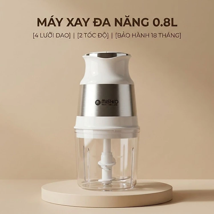 Máy Xay Mini Mishio MK389 - Dung Tích 0.8L, Xay Đồ Ăn Dặm, Gia Vị, Đồ Khô, Công Suất 250W Mạnh Mẽ - Hàng chính hãng