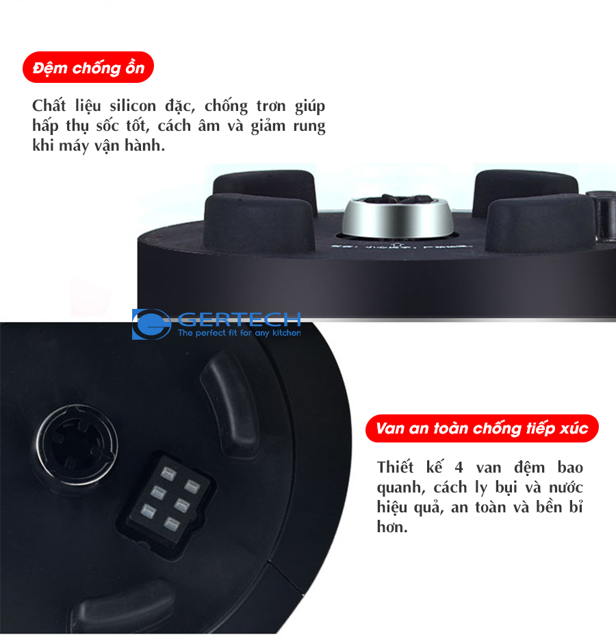 Thân máy được bọc một lớp Silicone chống trượt, chống ồn và 4 vách đệm ngăn thân cối bị xê dịch trong quá trình xay
