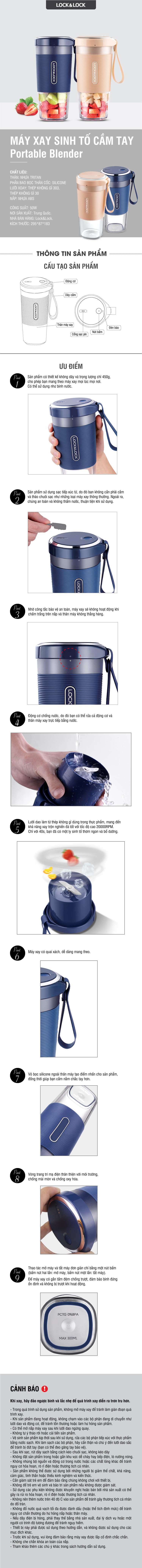 Máy Xay Sinh Tố Cầm Tay Lock&Lock EJJ321 (300ml) - Hàng Chính Hãng, Bảo Hành 12 Tháng, Không Dây, Dễ Mang Đi - Tặng Kèm Cọ Rửa Và Ống Hút Máy xay có quai xách, dễ dàng mang theo