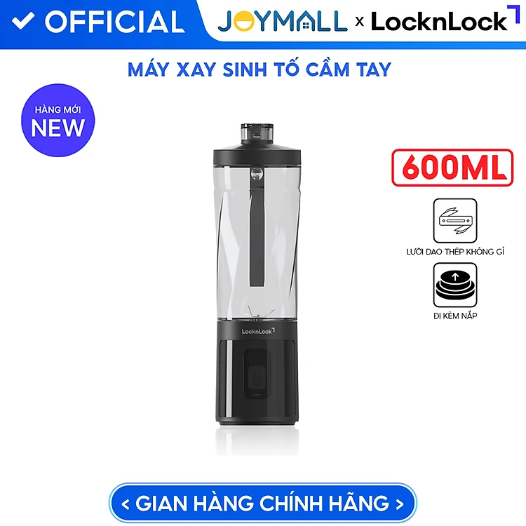 Máy Xay Sinh Tố Cầm Tay LocknLock Powerful Portable Blender EJJ356BLK 600ml, Hàng Chính Hãng, Thiết Kế Nắp Kèm Miệng Uống – JoyMall