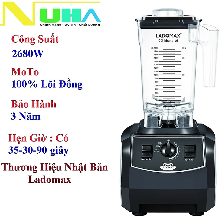 Máy xay sinh tố công nghiệp phá đá tốt 2680W Ladomax cối nhựa kháng vỡ 1.8L, dùng cho quán sinh tố, cửa hàng-Hàng chính hãng