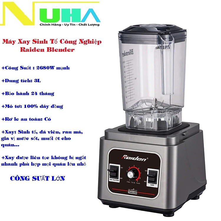 Máy xay sinh tố công nghiệp 2680W Raiden RD-628, cối 3L xay đá, rau má, gia vị, muối ớt, nước sốt - Hàng chính hãng