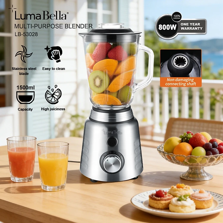 Máy xay sinh tố công nghiệp đa năng Lumabella LB-53028 công suất cao 800W, dung tích lớn 1.5L, xay rau củ quả và các loại hạt, 2 cối ABS cao cấp bền bỉ - DELIYA - HÀNG CHÍNH HÃNG