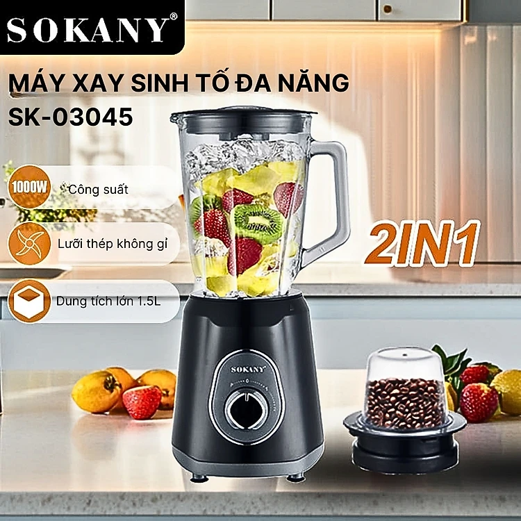 Máy xay sinh tố đa năng 2 IN 1 SOKANY SK-03045 công suất cao 1000W xay rau củ quả và các loại hạt, xay được đá viên - HÀNG CHÍNH HÃNG
