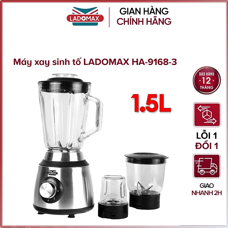 Máy xay sinh tố đa năng 3 cối Ladomax HA-9168-3 - Hàng chính hãng