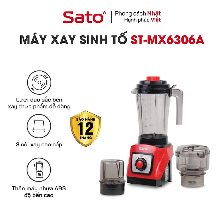 Máy xay sinh tố đa năng SATO MX6306A - Mô tơ điện được quấn dây 100% đồng nguyên chất có độ bền cao - Miễn phí vận chuyển toàn quốc - Hàng chính hãng