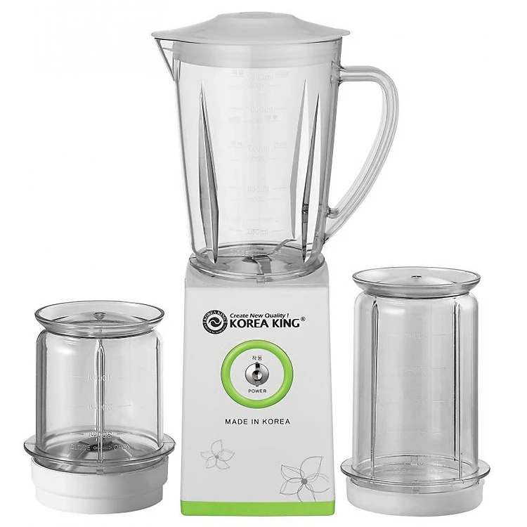 Máy gồm 1 cối lớn và 2 cối nhỏ, cho phép bạn xay được trái cây lẫn các loại nguyên liệu khô. Korea King KBL-500M sẽ mang đến sự tiện dụng tối đa cho bạn trong việc chế biến những ly sinh tố thơm ngon, bổ dưỡng cũng như xay các nguyên liệu khác.