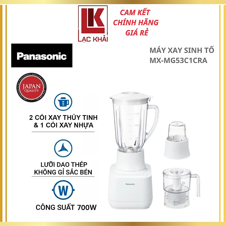 Máy Xay Sinh Tố Panasonic MX-MG53C1CRA - Công suất 700W- Dung tích 1.5L - Lưỡi dao thép không gỉ- cối xay thủy tinh/nhựa - Xay đá mịn - Hàng Chính Hãng - Bảo hành 12 tháng