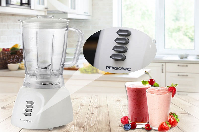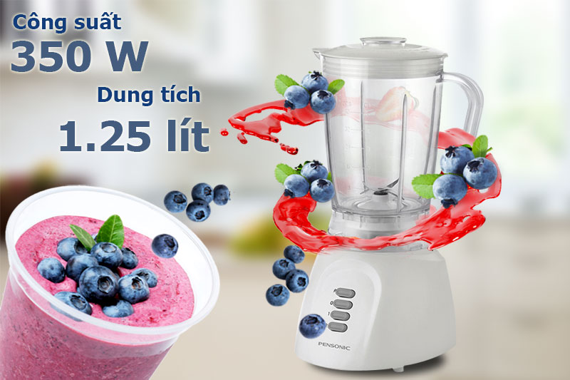 Công suất 350W bao gồm 2 tốc độ xay và 1 số nhồi giúp xay nhanh, mạnh mọi loại thực phẩm song vẫn đảm bảo tiết kiệm năng lượng. Chân đế của máy sinh tố Pensonic vững chắc, phía trên là các nút bấm điều chỉnh với 2 tốc độ xay và chế độ xoay nhồi rất dễ sử dụng cho người dùng.