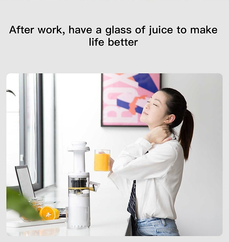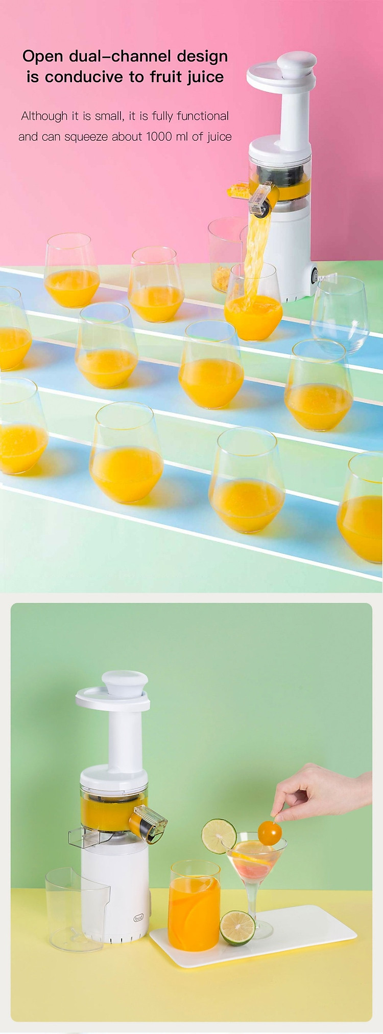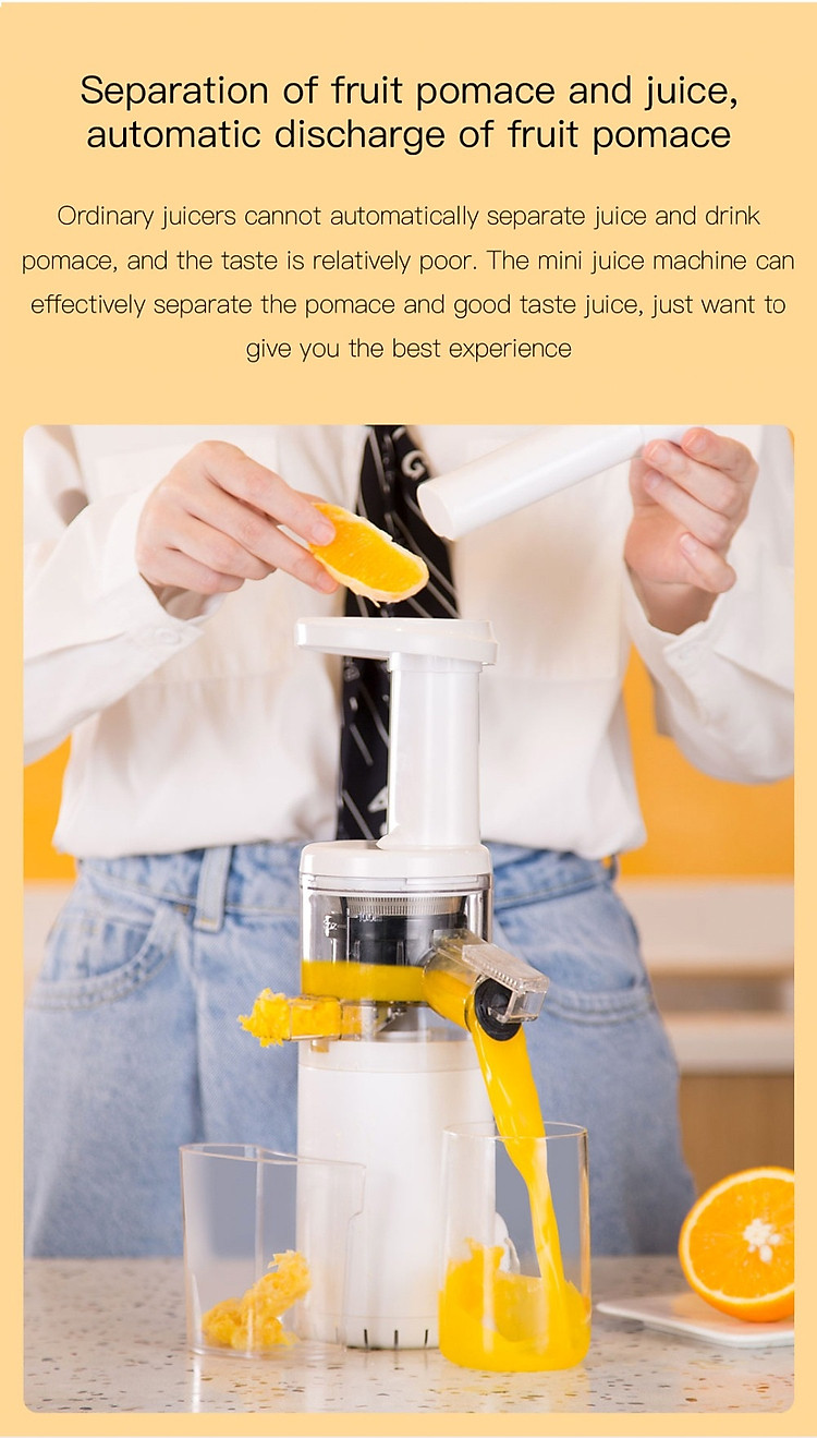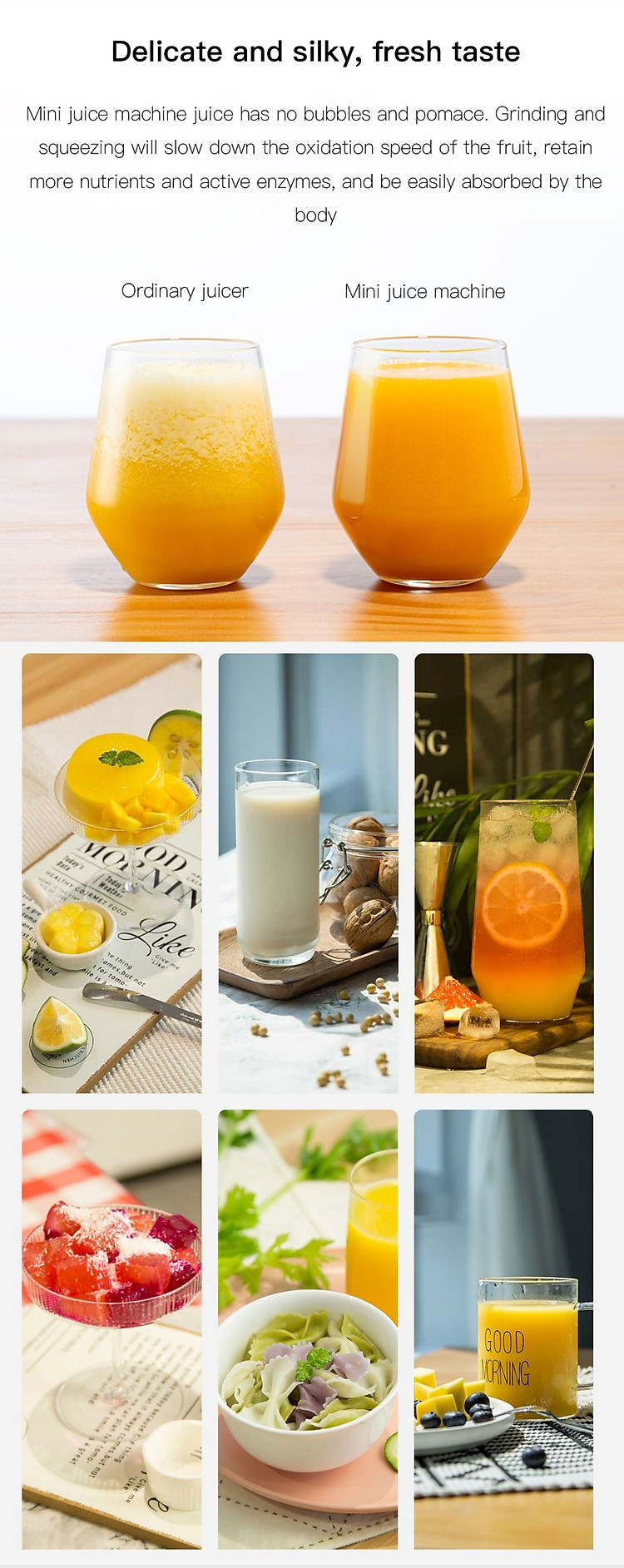 Mini juice machine juice has no bubbles and pomace. Grinding and squeezing will slow down the oxidation speed of the fruit, retain more nutrients and active enzymes, and be easily absorbed by the body