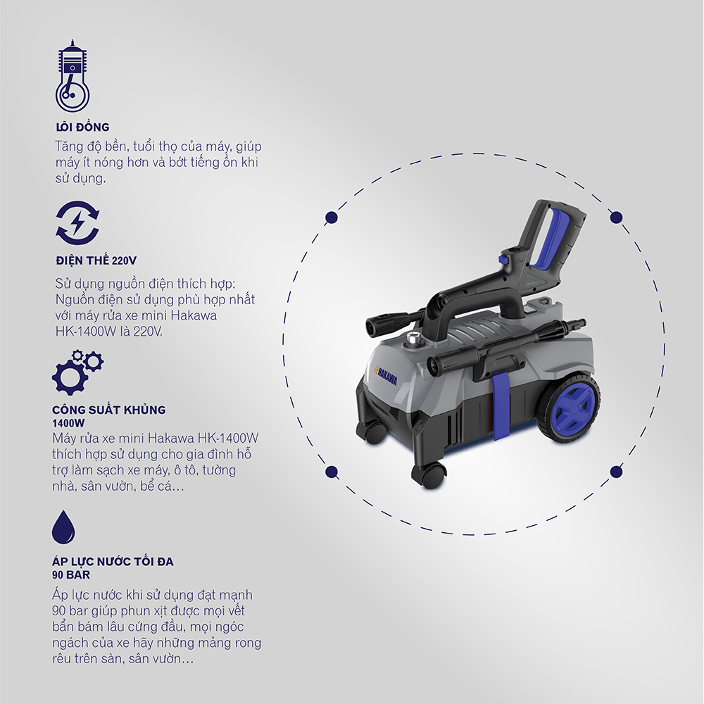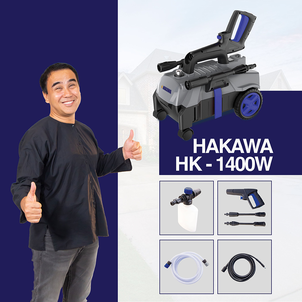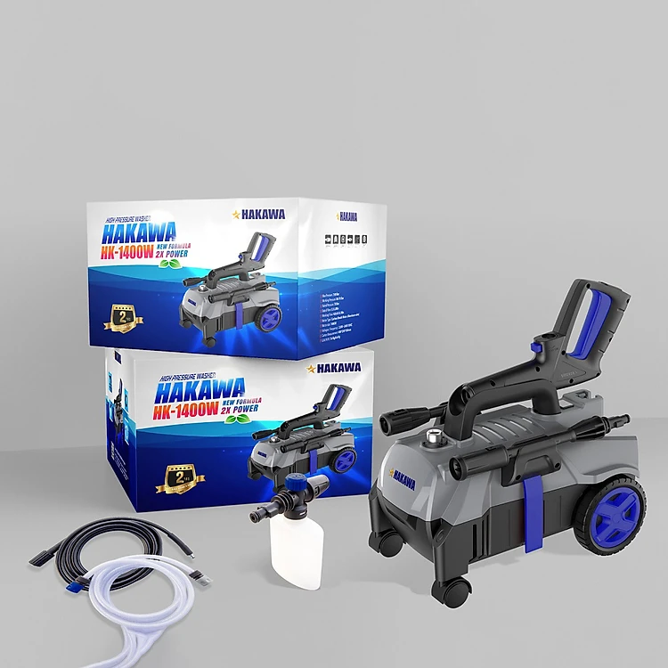 Máy xịt nước cao áp mini Hakawa HK-1400W thích hợp sử dụng cho gia đình hỗ trợ làm sạch xe máy, ô tô, tường nhà, sân vườn, bể cá…