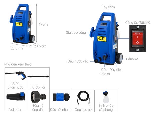 - Máy không đi kèm theo ống nước để nối từ vòi nước của gia đình vào thân máy (hầu hết tất cả các máy xịt đều như vậy)