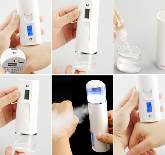 Máy phun sương được thiết kế thông minh, thời trang, nhỏ gọn tiện dụng nên bạn có thể mang theo bên mình mọi lúc mọi nơi, có kiều dáng như điện thoại cầm tay, được trang trí tinh tế.