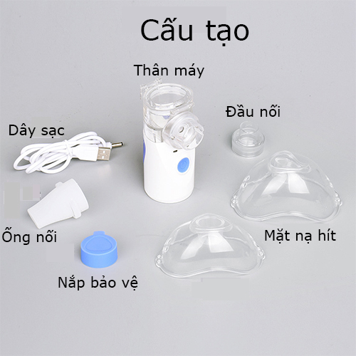 Bao gồm: Nắp bảo vệ, Thân máy, Mặt nạ hít, Ống xông miệng, Ống nối