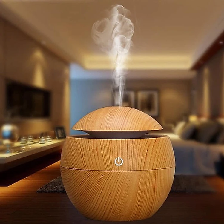 Máy xông tinh dầu Cao cấp kết nối bluetooth vân gỗ kèm tinh dầu (màu ngẫu nhiên) - Hàng nhập khẩu
