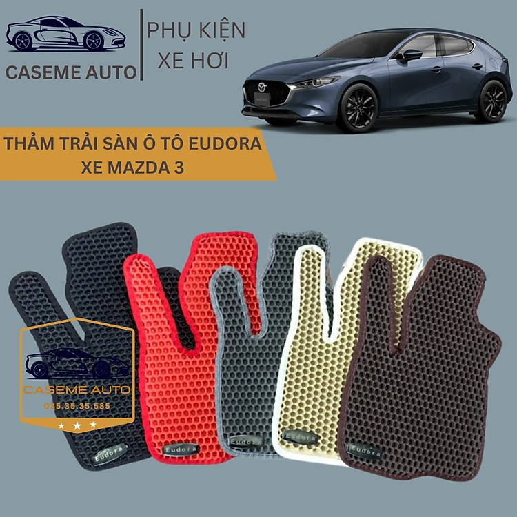 [MAZDA 3] Thảm Trải Sàn, Lót Sàn Ô Tô Cao Su Eudora CloudFoam Thiết Kế Theo Xe Dành Cho Xe MAZDA 3, Chống Nước, Không Mùi, Ngăn Bụi Bẩn, Dễ Vệ Sinh - Hàng Chính Hãng