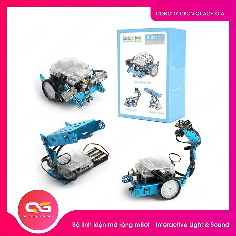 mBot Add-on Pack Interactive Light & Sound là gói 3 trong 1 dựa trên mBot. Bạn có thể xây dựng "Robot đuổi theo ánh sáng", "Robot bọ cạp" và "Đèn bàn thông minh" với mBot và các thành phần trong gói này. Mỗi người đều có khả năng vô hạn. Để trải nghiệm sự kỳ diệu của mBot trong ánh sáng và âm thanh thay đổi.