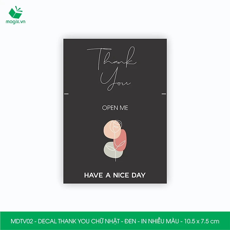 MDTV - 10.5x7.5 cm - 50 Decal Thank you hình chữ nhật dán hộp carton, Label Thank you, tem nhãn cảm ơn có sẵn keo dán niêm phong gói hàng - Nhiều màu