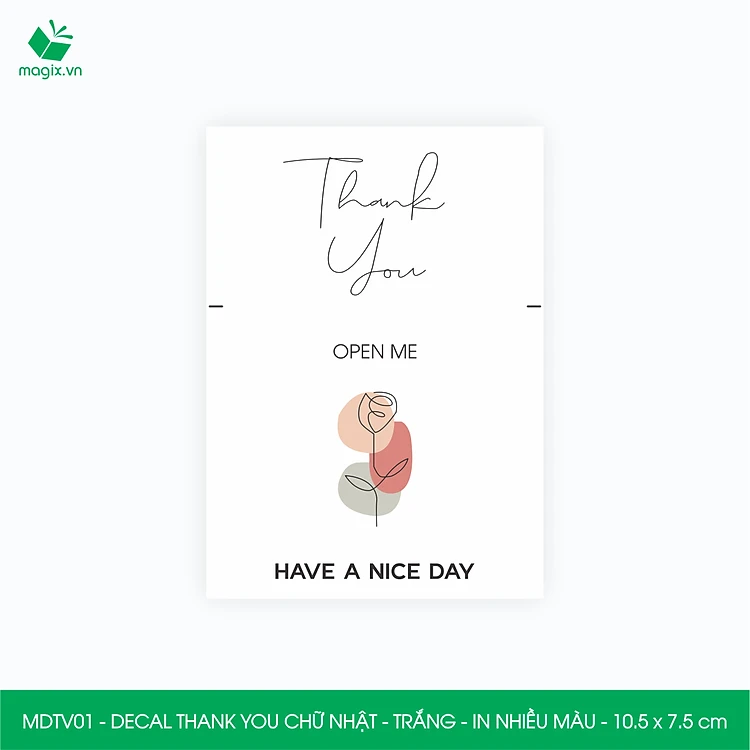 MDTV01 - 10.5x7.5 cm - 50 Decal Thank you hình chữ nhật dán hộp carton, Label Thank you, tem nhãn cảm ơn có sẵn keo dán niêm phong gói hàng