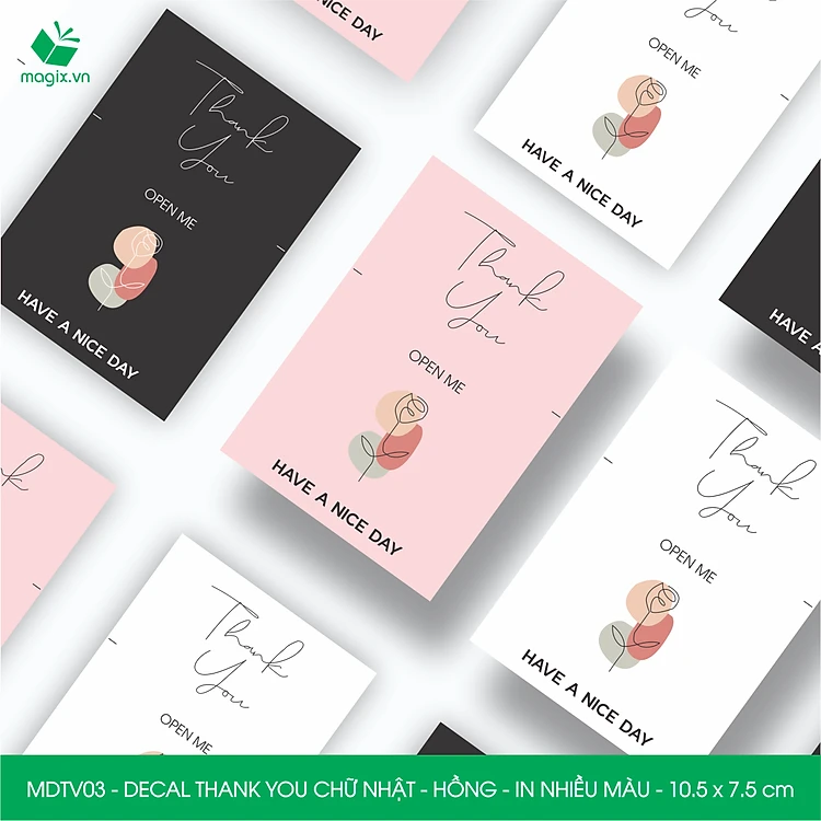 MDTV03 - 10.5x7.5 cm - 1000 Decal Thank you hình chữ nhật dán hộp carton, Label Thank you, tem nhãn cảm ơn có sẵn keo dán niêm phong gói hàng