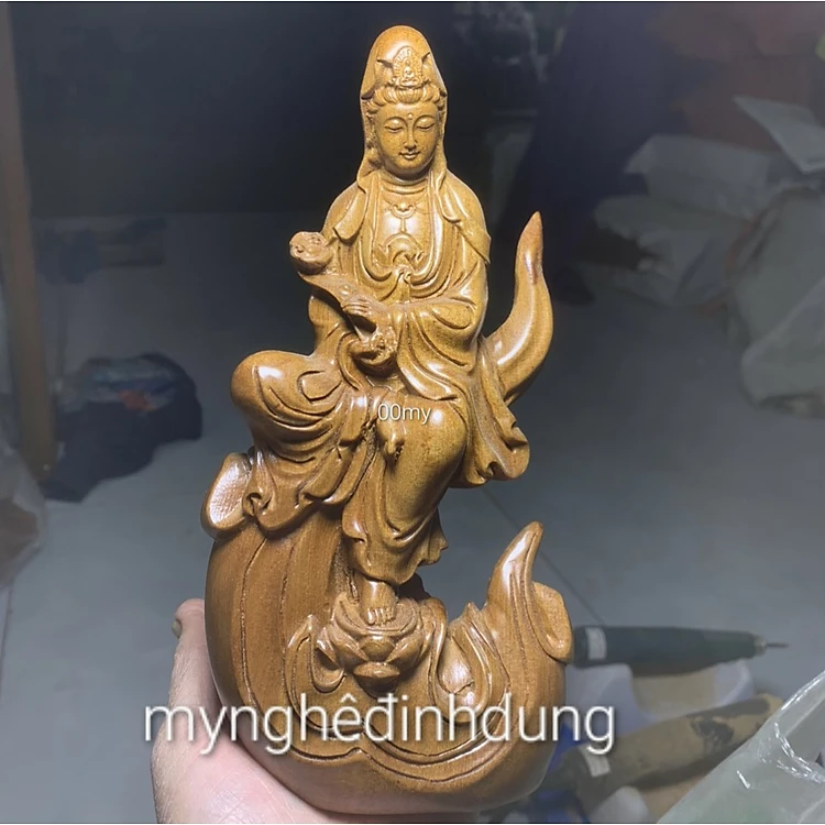 Mẹ phật bà quan âm bồ tát bằng gỗ bách xanh thơm nức kt cao 20×10×6cm