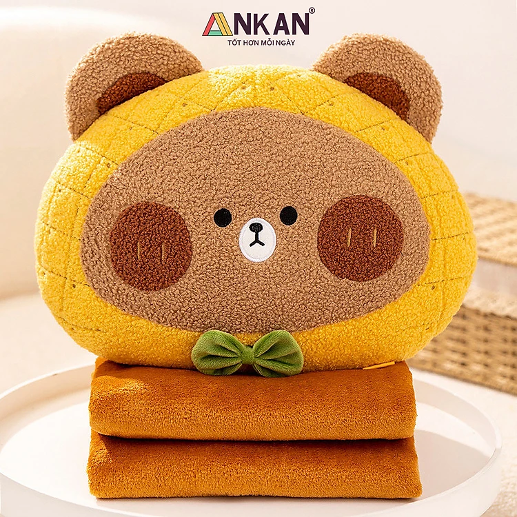 Mền Văn Phòng 3 Trong 1 Gấu Orange Cao Cấp Để Đi Dã Ngoại, Xe Giường Nằm, Ngủ Tại Văn Phòng Vô Cùng Tiện Dụng