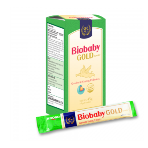 BioBaby Gold chứa khoảng 1x109 CFU (~1 tỷ CFU) các lợi khuẩn IDCC Lactobacillus Rhamnosus, IDCC Bifidobacterium Lactis, IDCC Enterococus Faecium giúp cân bằng vi khuẩn đường ruột, nhu động ruột tốt hơn.