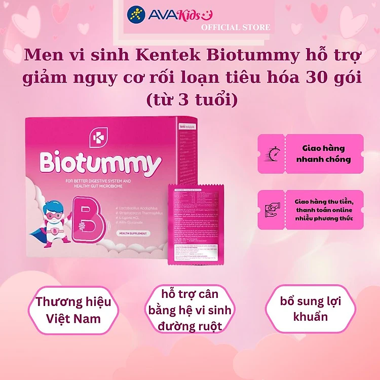 Men vi sinh Kentek Biotummy hỗ trợ giảm nguy cơ rối loạn tiêu hóa 30 gói (từ 3 tuổi)