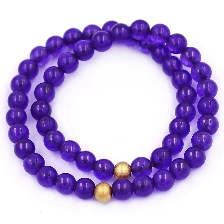 [Mệnh Hỏa, Thổ] Vòng Chuỗi Đôi 6 Ly Đá Thạch Anh Tím Charm Bi Inox VTAIHBD