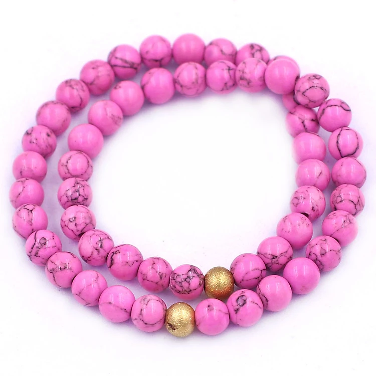 [Mệnh Hỏa, Thổ] Vòng Chuỗi Đôi 6 Ly San Hô Hồng Sọc Charm Bi Inox VSHHSHBD