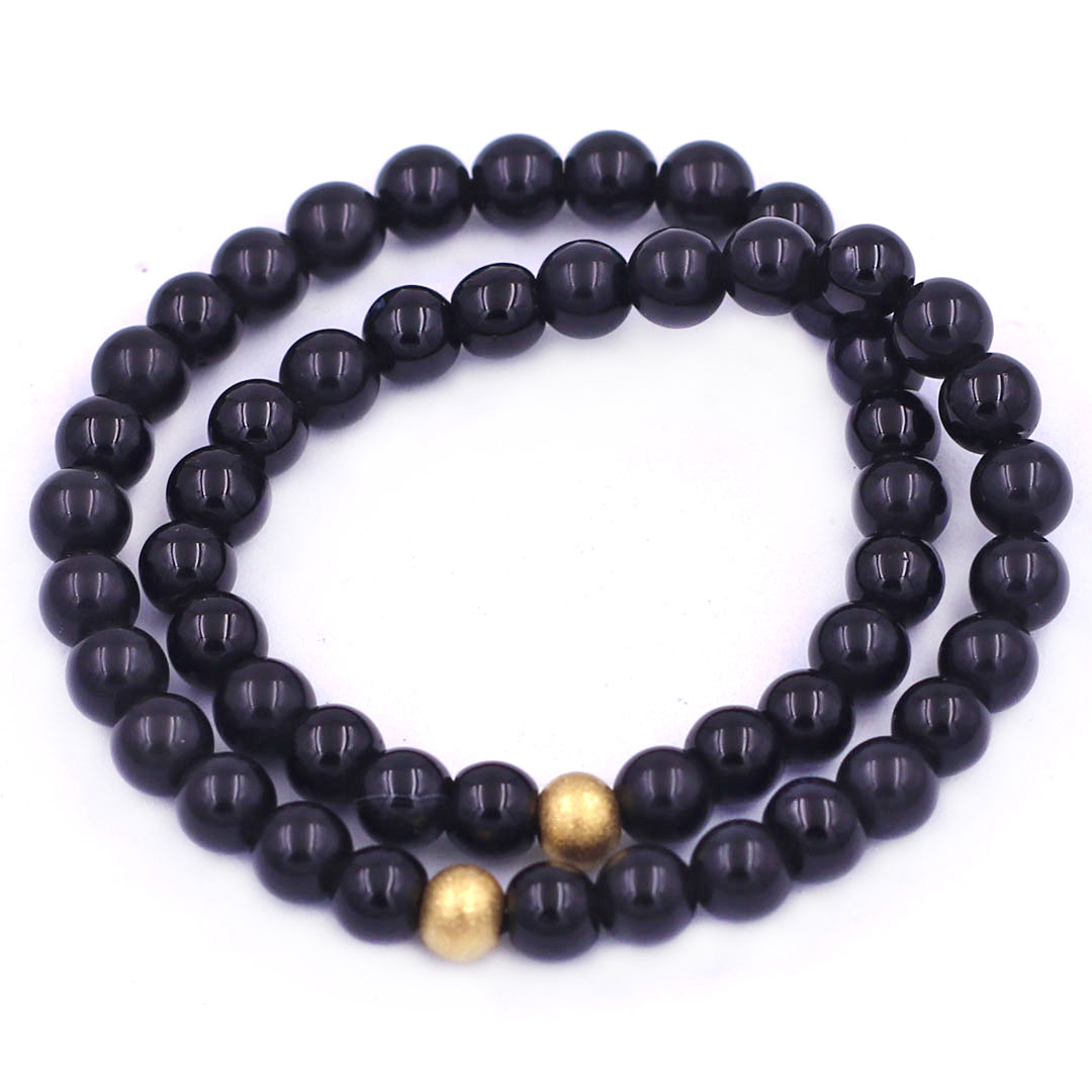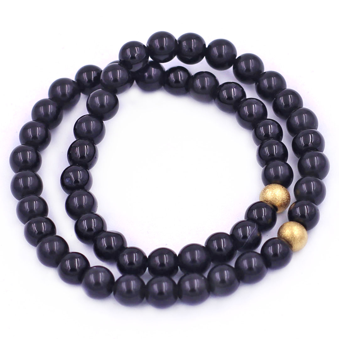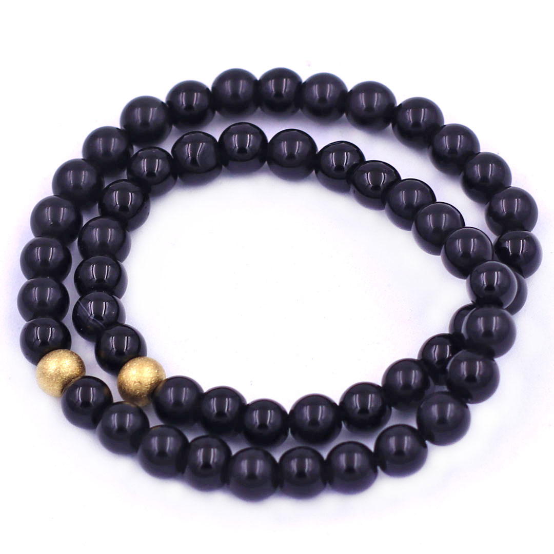 [Mệnh Thủy, Mộc] Vòng Chuỗi Đôi 6 Ly Đá Thạch Anh Đen Charm Bi Inox VTAEHBD