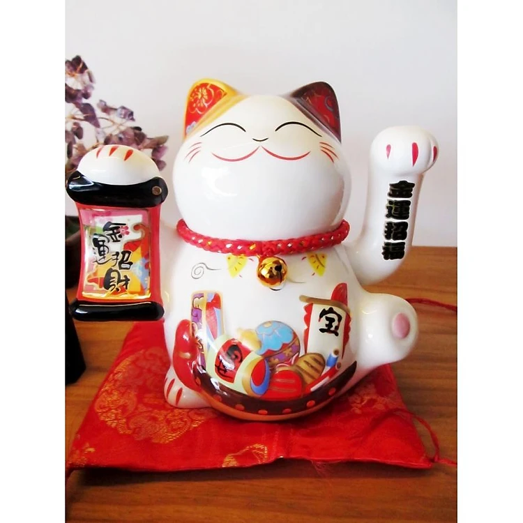 Mèo May Mắn Maneki Neko - Kim Vận Phát Tài (Trắng 14cm)
