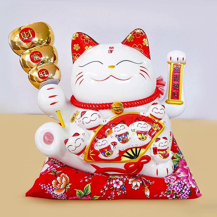 Mèo thần tài vẫy tay cầm xiên tiền vàng