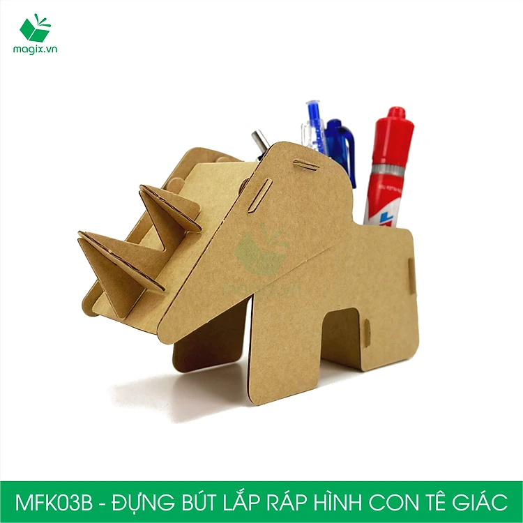 MFK03B - Đựng bút lắp ráp hình con tê giác, đồ đựng bút hình thú bằng giấy carton siêu cứng