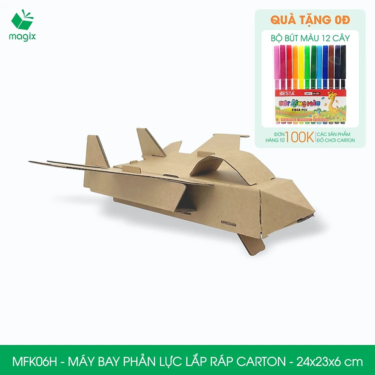 MFK06H - Máy bay phản lực carton - 24x23x6 cm - Đồ chơi lắp ráp mô hình từ bìa carton cứng cao cấp