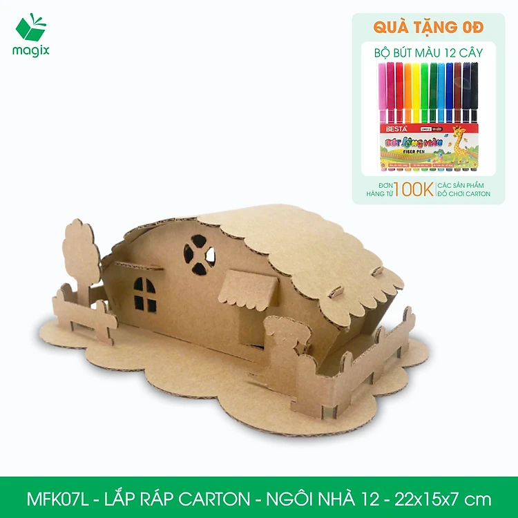 MFK07L - 22x15x7 cm - Mô hình ngôi nhà lắp ráp từ bìa carton cao cấp, nhà giấy carton mini sáng tạo