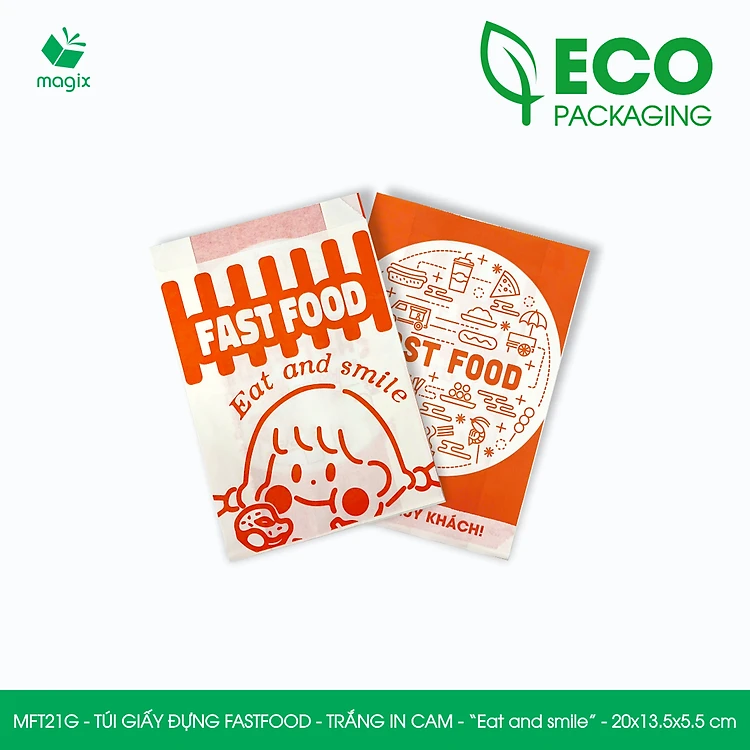 MFT21G - 20x13.5x5.5 cm - 500 Túi giấy MG đựng fastfood, túi đựng thực phẩm