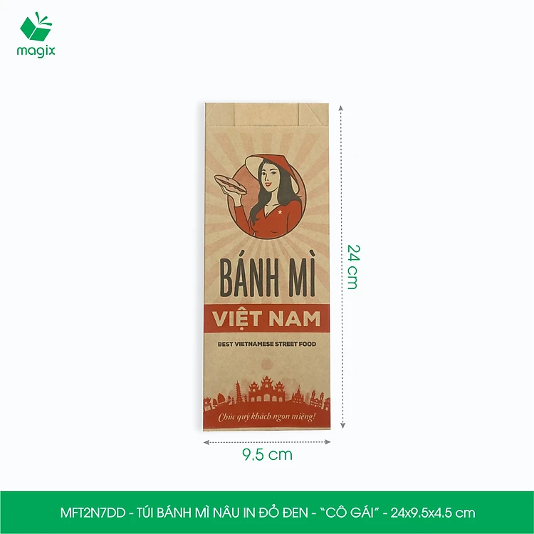 MFT2N7DD - 24x9.5x4.5 cm - 100 túi giấy đựng bánh mì, túi đựng thức ăn mang đi, túi take away