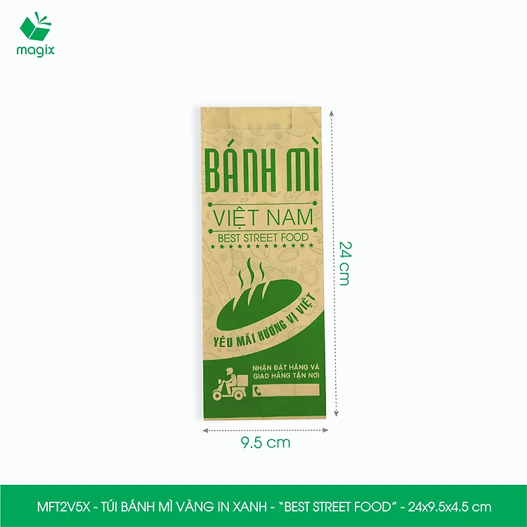 MFT2V5X - 24x9.5x4.5 cm - 100 túi giấy đựng bánh mì, túi đựng thức ăn mang đi, túi take away