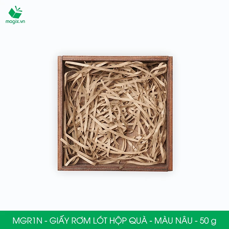 MGR1N - 50g Giấy rơm lót hộp quà màu nâu - Giấy sợi rơm trang trí - Giấy vụn chống sốc