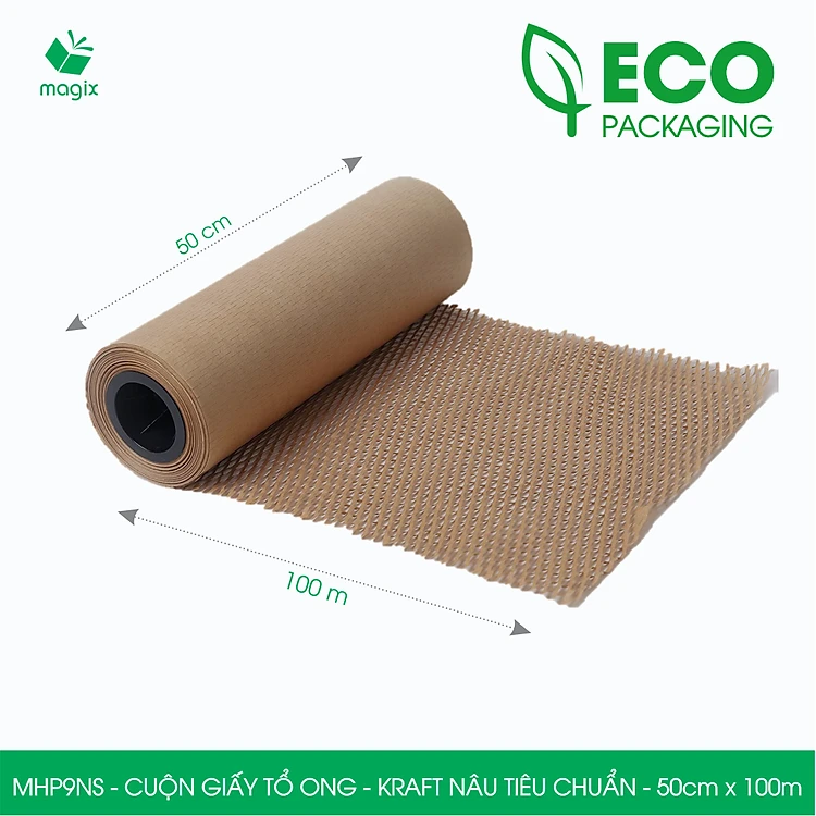 MHP9NS - 50cm x 100m - Cuộn giấy tổ ong chống sốc - Kraft nâu Tiêu Chuẩn - Giấy gói hàng, gói quà