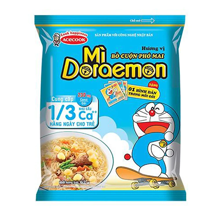 Mì Gói Doraemon Hương Vị Bò Cuộn Phô Mai Acecook (62g)