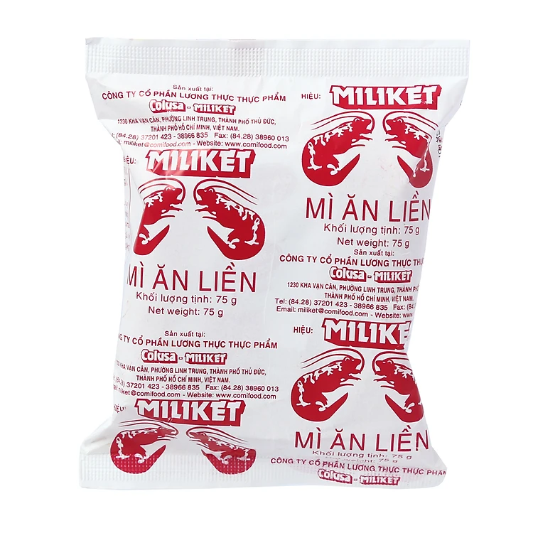 Mì là loại lương thực phổ biển của mọi gia đình. Mì Miliket nổi tiếng đến mức hình ảnh hai con tôm chụm in ngoài bao bì đã trở thành biểu tượng, thói quen và là cái tên chung cho các loại mì gói được sản xuất về sau này. Mì Miliket hương vị dễ ăn thích hợp với tất cả các lứa tuổi và khẩu vị.Gói giấy thân thiện, sợi mì vàng dai bóng mượt cùng nước súp Miliket vị tôm đậm đà và hương thơm hấp dẫn. Mì Miliket Hai Tôm giấy trắng gói 75g tiết kiệm, tiện lợi, thơm ngon ngoài cách chế biến thông thường còn rất phù hợp chế biến các món mì xào và đặc biệt ngon khi ăn kèm lẩu